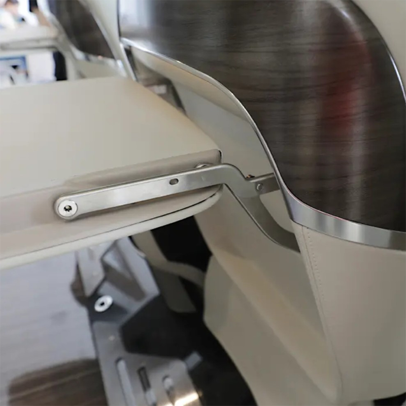 Projetada pensando na praticidade, a mesa dobra-se perfeitamente quando não está em uso, otimizando o espaço da cabine sem comprometer o conforto.